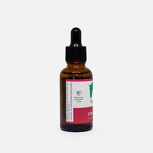 Eau, alcool/vinaigre de cidre, association de fleurs de Bach